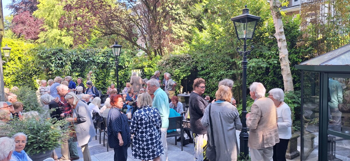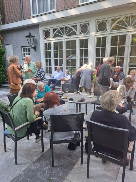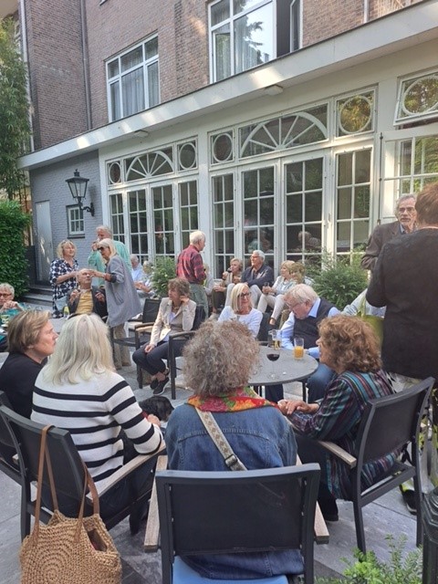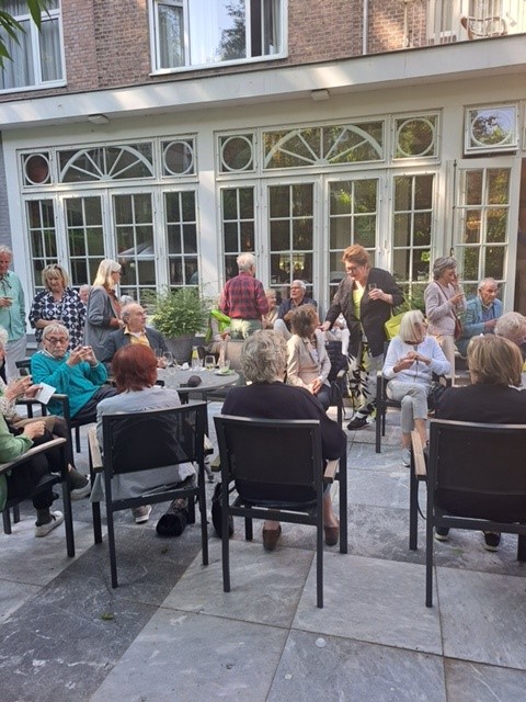 Op 31 mei vond de eerste zomerborrel van deze zomer plaats. De opkomst is nog nooit zo groot geweest; er waren zeker 50 tot 60 aanwezigen! In de prachtige tuin van Apollofirst vonden gezellige gesprekken plaats, maakten nieuwe leden kennis met zittende leden, en was het tot na de aangekondigde eindtijd nog zeer gezellig.