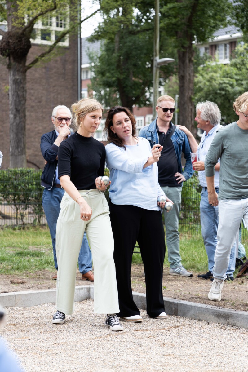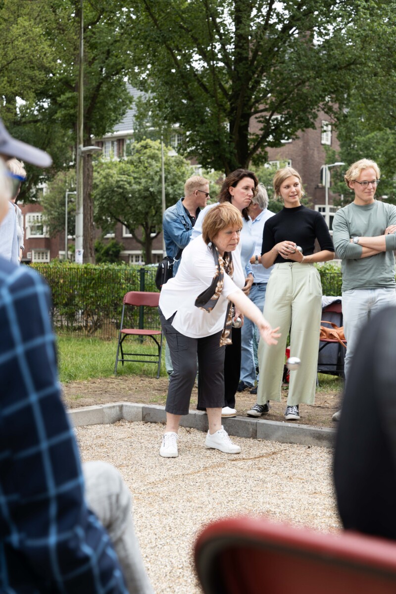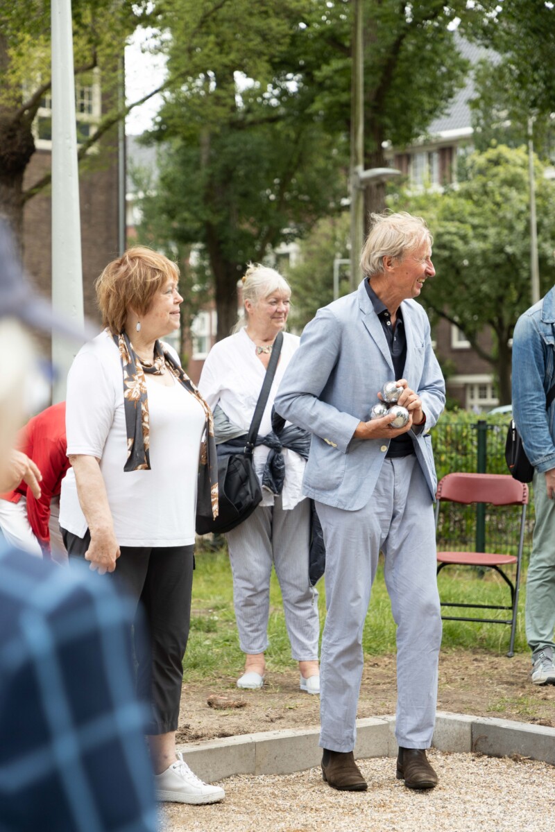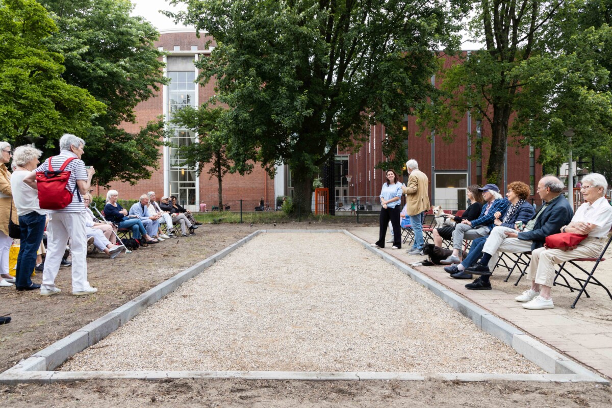 In haar toespraak onderstreepte mevrouw Breemer niet alleen haar liefde voor het spel pétanque, de Franse variant van jeu de boules, maar ook het sociale karakter van deze sport. Ongeacht leeftijd en fysieke beperkingen kan iedereen meedoen. De Gemeente heeft daarom graag het initiatief van het Stadsdorp ondersteund. De voorzitter van StadsdorpZuid Machiel van der Woude sprak zijn dank uit richting het stadsdeelbestuur en roemde in zijn toespraak de gebiedsmakelaars Martijn Companjen en Teun Montijn voor hun grote inzet en projectleider Lisa Hoeksema van het Gemeentelijk Ingenieursbureau voor de fijne samenwerking. Hopelijk wordt er in de komende tijd heel veel op deze baan gespeeld.